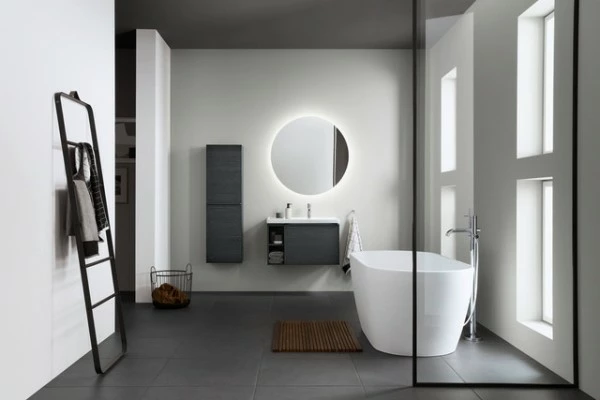- Aus durchgefärbtem weißem Mineralguss ohne sichtbare Fugen und Nähte