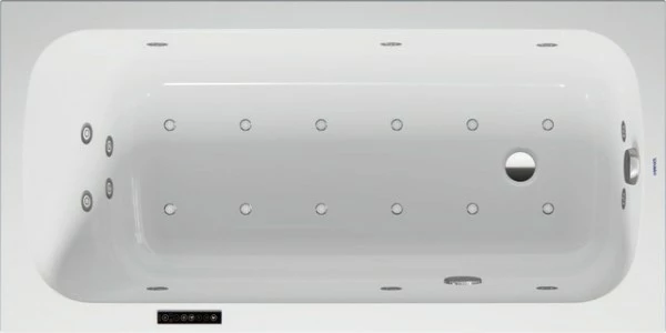 schwarzes Touch-Bedienfeld mit LED-hinterleuchteten Symbolen. - Montage eines Duravit Wannengriffs möglich für einen sicheren Ein- und Ausstieg (Montage nur ab Werk möglich)