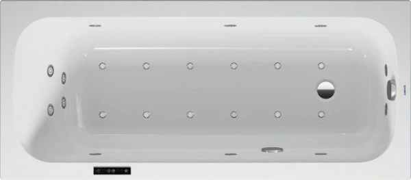 sowie vier flache Schwenkdüsen im Rückenbereich mit auf- und abwanderndem Wasserstrahl. - Komfortable Steuerung aller Whirlfunktionen über modernes