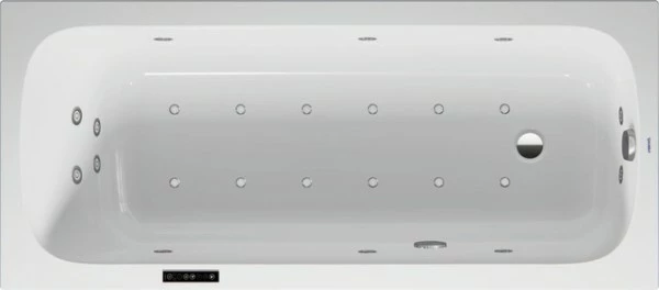 sowie vier flache Schwenkdüsen im Rückenbereich mit auf- und abwanderndem Wasserstrahl. - Komfortable Steuerung aller Whirlfunktionen über modernes