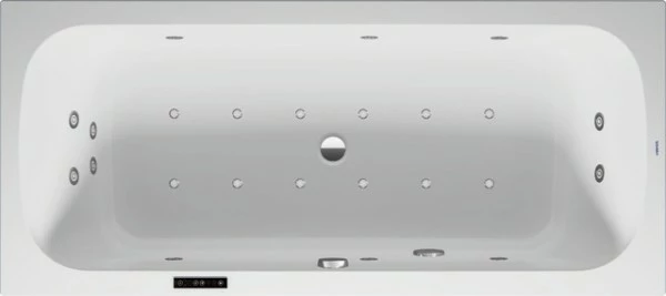 schwarzes Touch-Bedienfeld mit LED-hinterleuchteten Symbolen. - Montage eines Duravit Wannengriffs möglich für einen sicheren Ein- und Ausstieg (Montage nur ab Werk möglich)