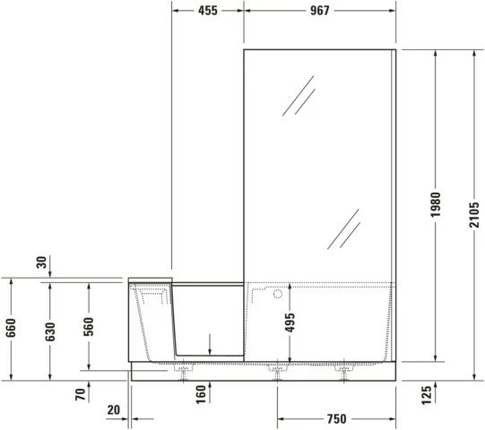 - Montage eines Duravit Wannengriffs möglich für einen sicheren Ein- und Ausstieg (Montage nur ab Werk möglich)