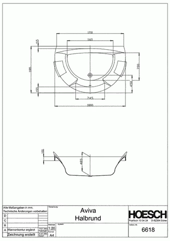 HOESCH Vorwand-Badewanne Aviva 1800×1185 mm, Einbauversion, mit 2 Rückenlehnen