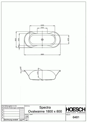 HOESCH Oval-Badewanne Spectra 1800×800 mm, Einbauversion