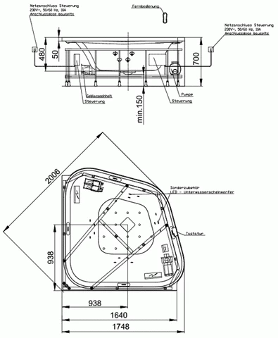 - Installationshöhe Whirlwanne: 700 mm
