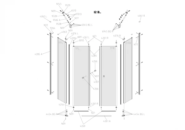 - Teilgerahmte Fünfeck-Duschkabine mit