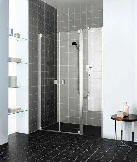 - Teilgerahmte Tür mit zwei Glasflügeln,