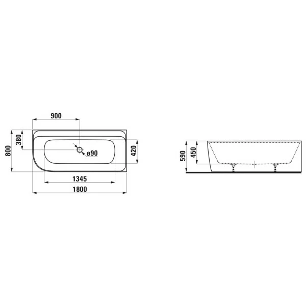 LAUFEN freistehende Badewanne MEDA 800x1800x590mm, Eckversion rechts Marbond weiss glänzend