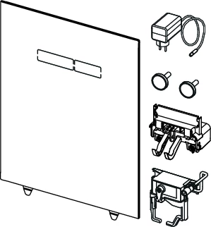 Obere Betätigungsglasplatte für TECElux Modul mit elektronischen sen-Touch Betätigungstasten und Befestigungsmaterial. Inklusive Stecker-Netzteil (Anschlusspannung 230 V) mit 2-Mengenauslösemotor.
