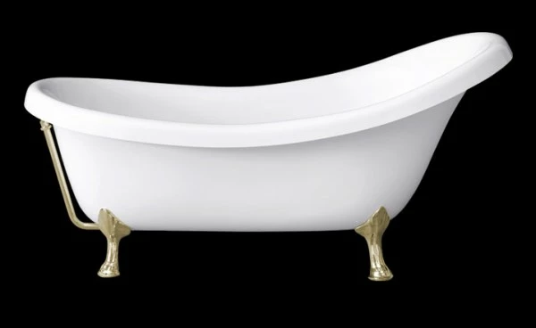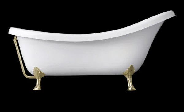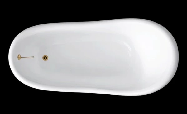 Ab- und Überlaufgarnitur aus poliertem Messing, mit Zierkette und Stöpsel, ist werkseitig vormontiert.